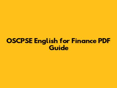 Why is the OSCPSE English for Finance PDF a Must-Have?