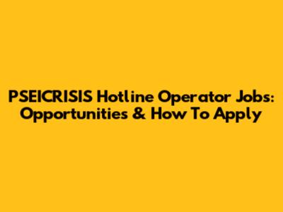 PSEICRISIS Hotline Operator Jobs: Opportunities & How To Apply