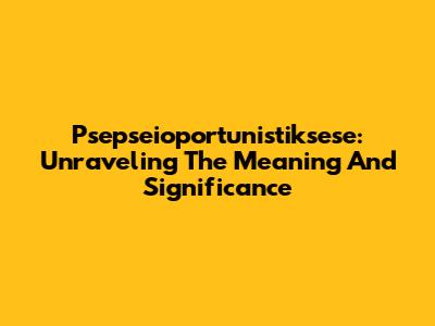 Psepseioportunistiksese: Unraveling The Meaning And Significance