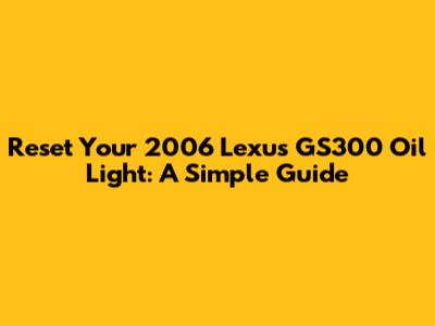 Reset Your 2006 Lexus GS300 Oil Light: A Simple Guide