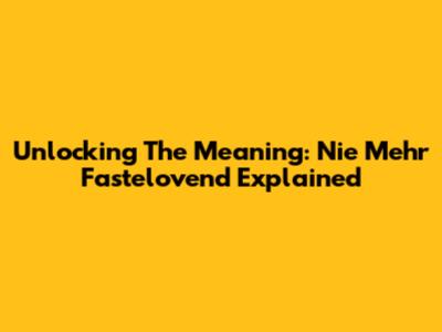 Unlocking The Meaning: 'Nie Mehr Fastelovend' Explained