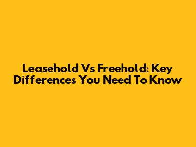 Leasehold Vs Freehold: Key Differences You Need To Know