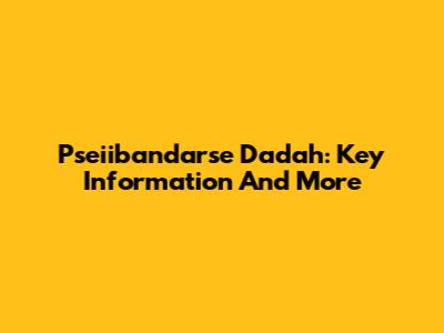 Pseiibandarse Dadah: Key Information And More