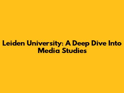 Leiden University: A Deep Dive Into Media Studies