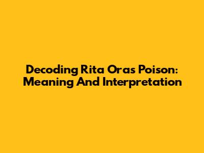 Decoding Rita Ora's 'Poison': Meaning And Interpretation