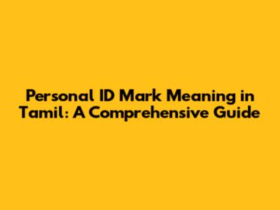 Hey guys! Ever wondered what a personal ID mark is and what it means, especially in the Tamil context? You're not alone! Understanding these marks, their significance, and how they're used can be super interesting and helpful. So, let's dive into the world of personal identification marks in Tamil culture and language. Whether you're trying to decipher old documents or just curious about cultural practices, this guide is for you!