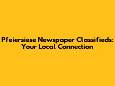 Hey guys! Ever wondered about the magic behind Pfeiersiese newspaper classifieds? It's like a hidden treasure trove of local goodness, connecting you with everything happening right in your backyard. Whether you're hunting for a vintage armchair, trying to sell off that bike you never ride, or even looking for a lost pet, the classifieds are your go-to spot. They're a cornerstone of community connection, making it super easy to find exactly what you need or offer up what you don't. In this article, we're going to dive deep into the wonderful world of Pfeiersiese newspaper classifieds, exploring what makes them tick, how you can make the most of them, and why they're still incredibly relevant in our digital age. Forget endless scrolling through generic websites; the classifieds offer a focused, community-driven approach that's hard to beat. We'll be covering everything from crafting the perfect ad to navigating different sections, and even touching on the history of how these local listings became such an integral part of community life. So, buckle up, and let's uncover the power of Pfeiersiese newspaper classifieds together!