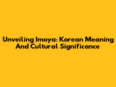 Unveiling 'Imoya': Korean Meaning And Cultural Significance
