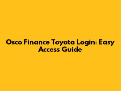 Osco Finance Toyota Login: Easy Access Guide