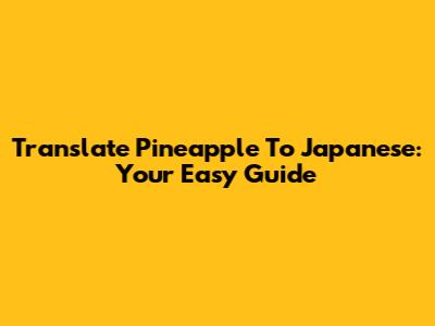 Translate Pineapple To Japanese: Your Easy Guide