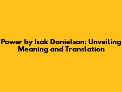 Hey music lovers! Ever gotten chills listening to a song and felt like it spoke directly to your soul? Well, if you haven't experienced that with Isak Danielson's "Power," prepare yourselves, because you're in for a treat! This article dives deep into the heart of "Power," exploring its powerful lyrics, the emotions they evoke, and, of course, a detailed translation to help you fully grasp the song's message. We're going to break down every aspect, from the stunning vocals to the raw emotion that makes this song so captivating. Ready to unlock the secrets behind "Power"? Let's dive in, guys!