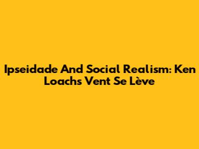 Ipseidade And Social Realism: Ken Loach's 'Vent Se Lève'