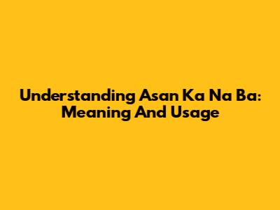 Understanding 'Asan Ka Na Ba': Meaning And Usage