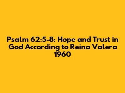 Hey everyone! Today, let's dive deep into a powerful passage from the Bible: Psalm 62:5-8 in the Reina Valera 1960 version. This psalm is all about finding our hope and trust in God alone. We'll break down each verse, explore its meaning, and see how it applies to our lives today. Ready? Let's get started!