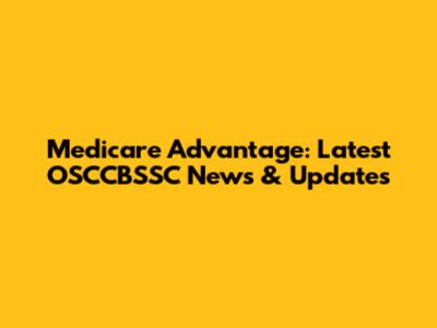 Medicare Advantage: Latest OSCCBSSC News & Updates