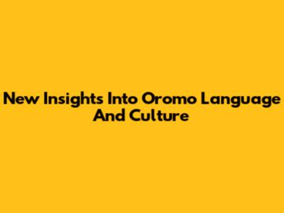 New Insights Into Oromo Language And Culture