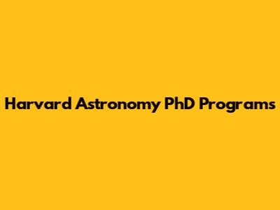 Harvard Astronomy PhD Programs