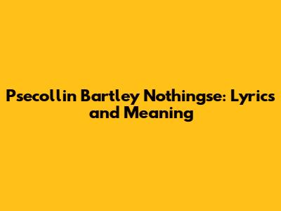 Let's dive into the world of Psecollin Bartley and dissect the lyrics and meaning behind "Nothingse." This song has been making waves, and for good reason. It’s packed with emotion, thoughtful lyrics, and a sound that’s uniquely Psecollin Bartley. Guys, whether you're a long-time fan or just discovering this artist, understanding the nuances of "Nothingse" will definitely enhance your appreciation for the music. We'll explore the lyrical content, unpack the possible meanings, and consider the overall impact of the song. Get ready to explore the depths of Psecollin Bartley's musical artistry and understand why “Nothingse” resonates with so many listeners. From the opening chords to the final fade-out, every aspect of this track contributes to its overall message and emotional impact. So, let's get started and unlock the secrets hidden within the lyrics of “Nothingse.” I am excited to get started, are you?