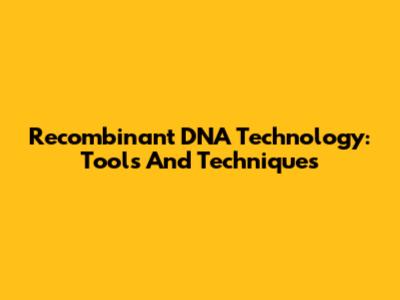 Recombinant DNA Technology: Tools And Techniques