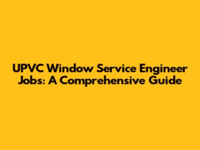 UPVC Window Service Engineer Jobs: A Comprehensive Guide