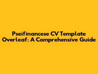Pseifinancese CV Template Overleaf: A Comprehensive Guide