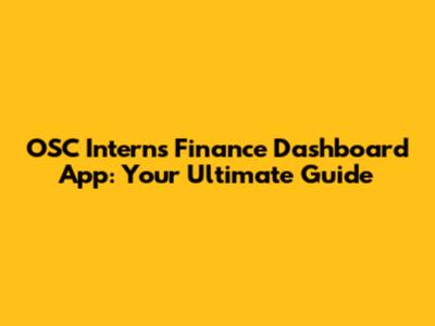 OSC Intern's Finance Dashboard App: Your Ultimate Guide