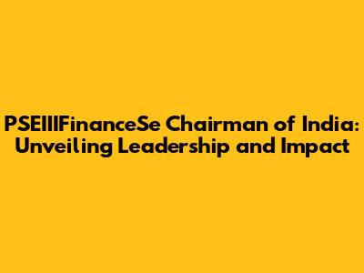 Hey there, finance enthusiasts! Let's dive deep into the fascinating world of PSEIIIFinanceSe in India. Specifically, we're going to explore who's calling the shots – the Chairman – and how their leadership shapes this important financial institution. So, buckle up, because we're about to embark on a journey filled with insights, analysis, and a whole lot of financial jargon (don't worry, I'll break it down!). We'll uncover the key roles, responsibilities, and influence of the PSEIIIFinanceSe Chairman, and how their decisions impact the financial landscape of India. Understanding the leadership structure of such a significant entity is crucial for anyone interested in finance, economics, or simply wanting to stay informed. After all, the chairman sets the tone, direction, and overall strategy. This individual significantly influences the financial well-being of the nation. We will discuss the selection process of the chairman and some of the skills they need to have. We will also delve into the impact the chairman has on the organization. We'll explore the impact of the chairman on the company's financial performance. Moreover, the chairman's influence extends beyond the immediate operations of PSEIIIFinanceSe, impacting broader financial markets, policies, and the overall economic climate of India. Ready to learn more? Let's get started!