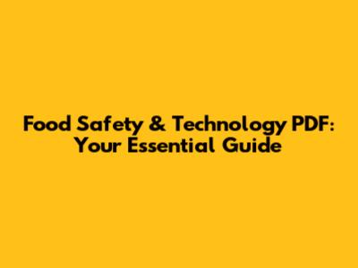 Food Safety & Technology PDF: Your Essential Guide