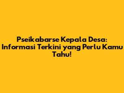 Info Terbaru: Update Pseikabarse Kepala Desa yang Wajib Kamu Tahu!
