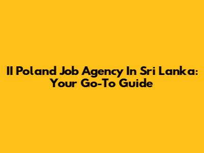 II Poland Job Agency In Sri Lanka: Your Go-To Guide