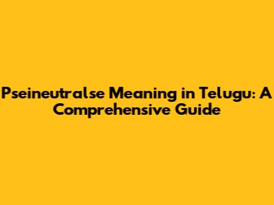 Hey guys! Have you ever stumbled upon the word "pseineutralse" and wondered what it means, especially in Telugu? Well, you're not alone! It's a term that might not pop up in everyday conversations, but understanding its meaning can be super helpful, especially if you're diving into more technical or specialized fields. In this article, we're going to break down the meaning of "pseineutralse" in Telugu, explore its nuances, and give you a clear understanding of how to use it. So, let's get started and unravel this linguistic puzzle together!