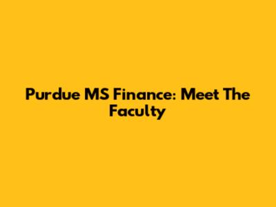Purdue MS Finance: Meet The Faculty