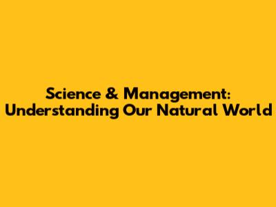 Science & Management: Understanding Our Natural World