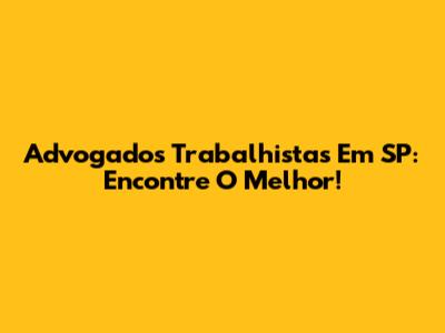 Advogados Trabalhistas Em SP: Encontre O Melhor!