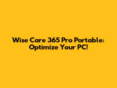 Wise Care 365 Pro Portable: Optimize Your PC!