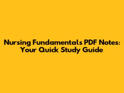 Nursing Fundamentals PDF Notes: Your Quick Study Guide