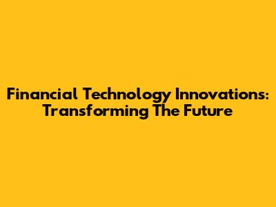 Financial Technology Innovations: Transforming The Future