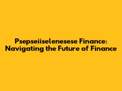How Psepseiiselenesese Finance is Shaping the Future