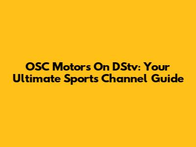 OSC Motors On DStv: Your Ultimate Sports Channel Guide