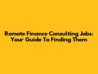 Remote Finance Consulting Jobs: Your Guide To Finding Them