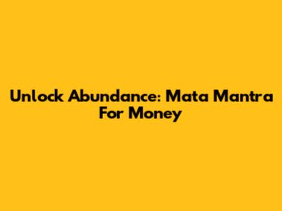 Unlock Abundance: Mata Mantra For Money