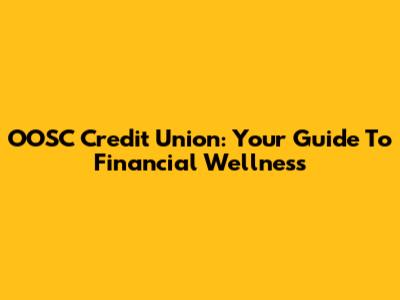 OOSC Credit Union: Your Guide To Financial Wellness