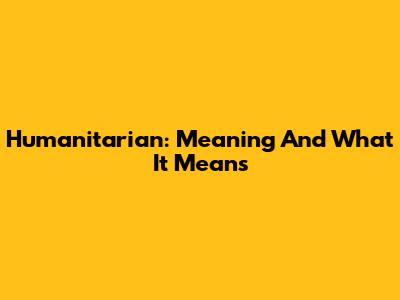 Humanitarian: Meaning And What It Means
