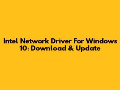 Intel Network Driver For Windows 10: Download & Update