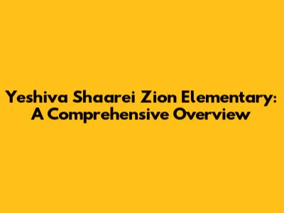 Yeshiva Shaarei Zion Elementary: A Comprehensive Overview