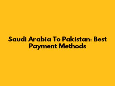 Saudi Arabia To Pakistan: Best Payment Methods