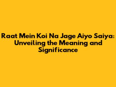 Understanding the Essence of "Raat Mein Koi Na Jage Aiyo Saiya"