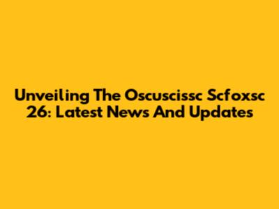 Unveiling The Oscuscissc Scfoxsc 26: Latest News And Updates