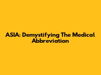 ASIA: Demystifying The Medical Abbreviation
