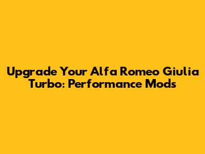 Upgrade Your Alfa Romeo Giulia Turbo: Performance Mods
